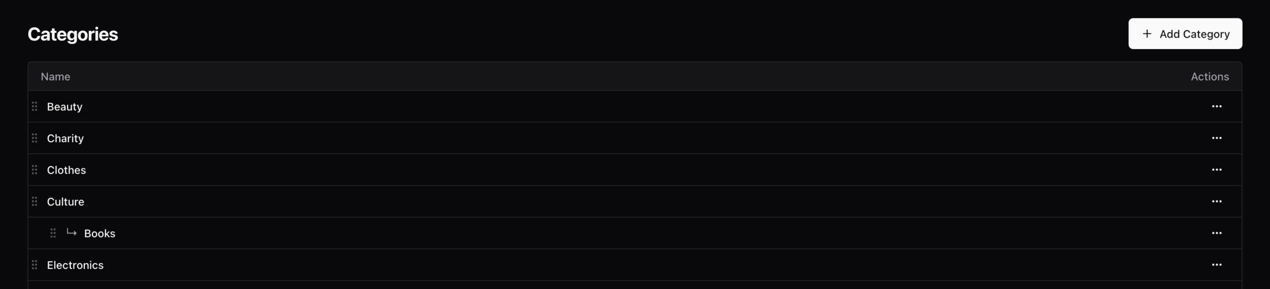Parent-child relationships - Create nested category structures (e.g., Shopping > Electronics > Computers)
