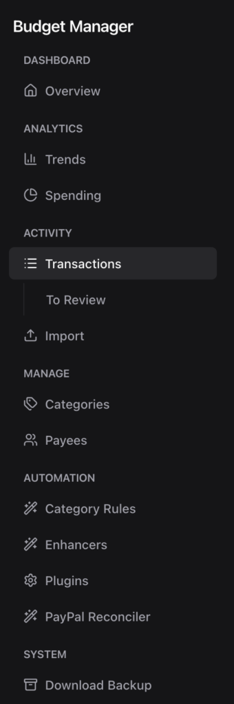 - Payee-based rules – “All transactions from ‘Spotify’ → Entertainment > Streaming”